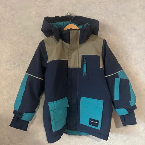 Polarn O. Pyret lasten toppatakki, koko 98, väri musta. Unisex-mallinen takki, jossa huppu, etutaskut nepparikiinnityksellä sekä vetoketjullinen rintatasku. Kontrastiväriset oranssit sisäosat ja hihansuut, joissa tarrakiristys ja peukaloreiällinen resori. Takissa on heijastinyksityiskohtia ja kuviollinen vuori. Sopii arki- ja ulkoilukäyttöön lapselle, jonka pituus on noin 98 cm.