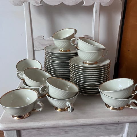 Arabian kuusi hyväkuntoista Katariina-kahvikuppia, aluslautasta ja pullalautasta. Aikoinaan ollut myynnissä ainoastaan Hobbyhallissa. Siistit ja ehjät kahvikupit aluslautasineen. Yhteishinta. Mieluiten nouto. Maksu käteisellä tai Mobilepaylla.