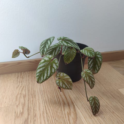 Viherkasvi luonnonvalkoisessa ruukussa. Kasvi on monivartinen ja siinä on vihreät, soikeat lehdet. Sopii sisätiloihin esimerkiksi ikkunalaudalle tai pöydälle.