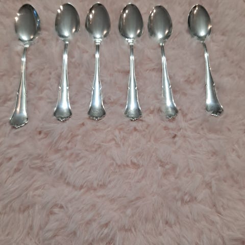 Erä hopeisia ruokalusikoita eri malleja ja koristeluita. Lusikoissa on erilaisia varsi- ja kaiverruskuvioita. Soveltuvat esimerkiksi kattaukseen tai keräilyyn. Paino yhteensä noin 862 g kuvan vaa’an mukaan. Materiaalista ei tietoa mutta oletan että alpakkaa.