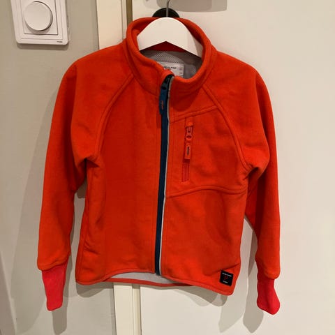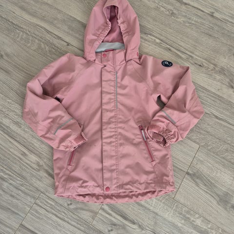 Polarn O. Pyret kuoritakki, koko 110 (4–5 vuotta). Takki käyttämätön, nimilapun ehdin liimata ennakkoon syksyllä, mutta takki jäikin pieneksi ennen kevään tuloa. Keskivartalon kohdalla ohut fleece vuori, ei hihoissa.
