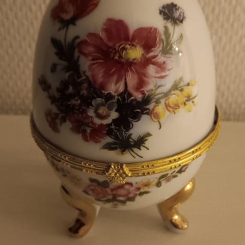 Valkoinen, keraaminen pääsiäismuna, alaosa beigen värinen. Korkeus 10cm. Kolhuton ja naarmuton.