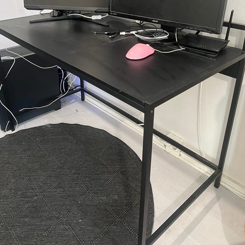On paljon jälkiä, mutta halutessaan voi hioa ja maalata tai lakata pöydän.