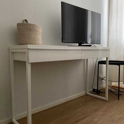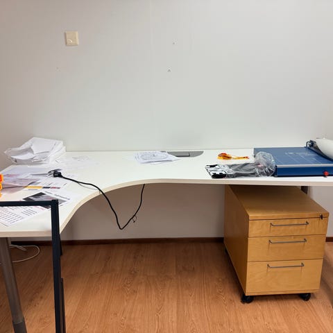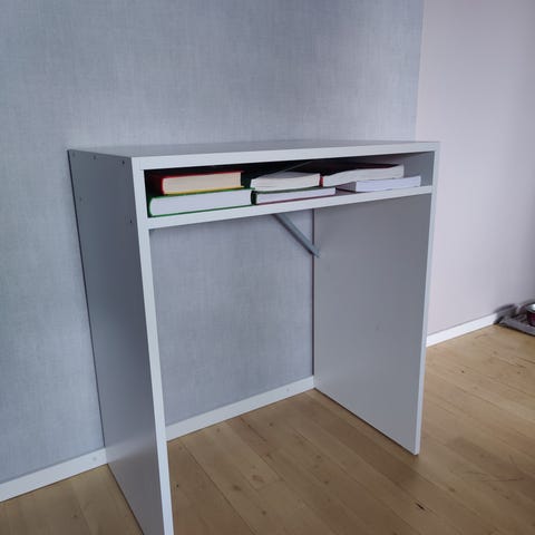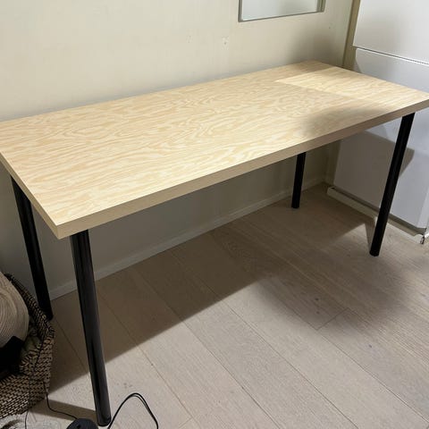 Musta työpöytä, jonka pinnassa näkyy käytön jälkiä. Pöydässä laatikko, jonka levy irronnut. Vaatii korjausta/liimausta. Muuten ok kuntoinen. Omat kantajat mukaan. Lisäkuvia voin tarvittaessa kulumista laittaa. Mukaan kuuluu myös pöydän päällä oleva hylly.