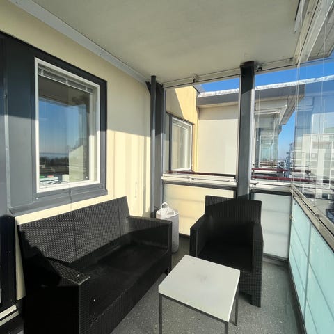 Myydään parvekesohva, jossa voi vaihtaa selkänojan paikkaa. Pituus 175 cm, josta puuosa 35 cm. Leveys 70 cm ja selkänojan leveys 4 cm. Yhdessä patjassa on haalistumaa, joka on havaittavissa kuvassa. Muuten sohva on hyvässä kunnossa. Myydään, koska ei mahdu kunnolla uuden asunnon parvekkeelle. Ostaja noutaa