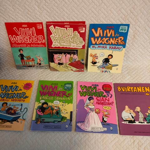 Viivi ja Wagner sarjakuvakirjat kokoelma. Useita eri albumeita samasta sarjasta, värikannet ja nidottu kirjamalli. Sopii sarjakuvien lukemiseen ja kokoelman täydentämiseen.