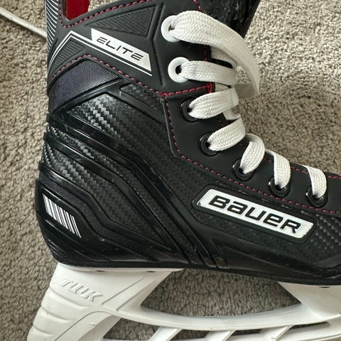 Bauer Vapor jääkiekkoluistimet lapsille, koko EU 35 (US 4, UK 3,5). Väri musta punaisilla ja harmailla yksityiskohdilla. Nauhakiinnitys ja valkoinen teräpidin. Soveltuvat jääkiekkokäyttöön ja yleiseen luisteluun lapsille, joiden kengännumero on noin 35.