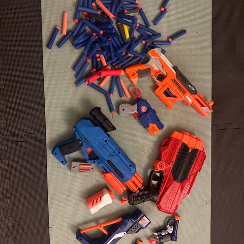 Nerf leikkipyssysarja vaahtonuolet. Pakettiin kuuluu useita eri kokoisia leikkipyssyjä sekä muovilaatikollinen vaahtonuolet-ammuksia. Leikkipyssyt ja ammukset on valmistettu muovista ja vaahtomuovista. Soveltuu lasten leikkeihin, joissa käytetään Nerf-tyyppisiä vaahtonuolet-aseita. Myydään kokonaisuutena kuvien mukaisena settinä.