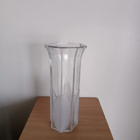 Erikoinen 12.5 cm korkuinen ehjä lasimaljakko. Ei halkeamia tai säröjä. Todennäköisesti böömiläistä lasia, noin 1920- luvulta. Väri ruskea/meripihka, irisoiva.