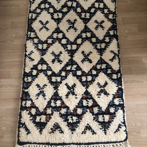 Kaunis, siistissä kunnossa oleva ja tahraton kukkakuvioinen ja kasviaiheinen villamatto. Sopii esimerkiksi käytävälle pituutensa vuoksi.