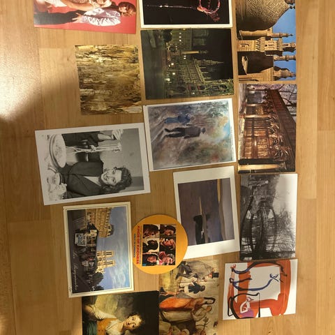 Sekalainen kokoelma postikortteja. Korteissa on erilaisia kuvia, kuten luontomaisemia, rakennuksia, ihmishahmoja, sisätiloja ja taidekuvia. Sopii esimerkiksi keräilyyn, askarteluun tai sisustukseen. Koko ja tarkempi ikä vaihtelevat korteittain.