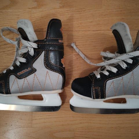 Cantop jääkiekkoluistimet lapsille, koko 27. Väri musta valkoisilla ja punaisilla yksityiskohdilla. Teräksiset luistinterät ja valkoinen terärunko. Nauhakiinnitys. Soveltuvat jääkiekkoluisteluun ja yleiseen luisteluun lapsille, joiden kengänkoko on noin 27.