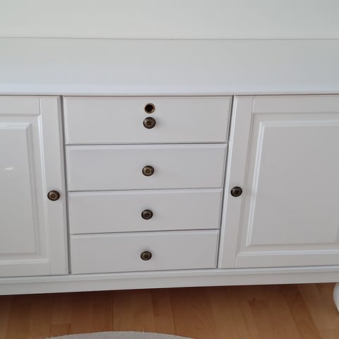 Kaunis valkoinen senkki. Arviolta 50-luku. Jälkeenpäin siististi maalattu. Joitakin käytön jälkiä. Yleisilme siisti.