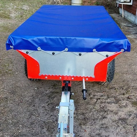 Mittaa mönkijän lava ulkoreunoista ulkoreunoihin ja lisää mittoihin peitteelle haluamasi lavanylistys (yleensä 4-7 cm / sivu eli koko mitoissa yleensä + 8-14 cm).