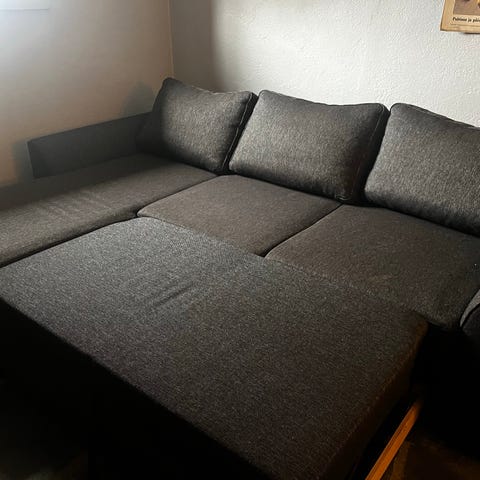 Myydään aikanaan Maskusta ostettu divaanisohva. Divaanin voi vaihtaa myös sohvan toiselle puolelle. Divaanin syvyys 135cm. Ilmoitettu korkeus mitattu selkänojan korkeimmasta kohdasta. Sohvassa alkuperäiset mustat 18cm jalat. Verhoilu ehjä. Huom! sohva ollut kissataloudessa.