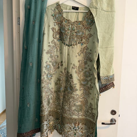 Feresin etuosa: edustan napista helmaan n. 118 cm, takaosan pituus n. 100cm.