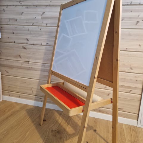 Lasten nappula-alusta, piirustussetti ja rakennuspalat. Sopii askartelu- ja rakenteluleikkeihin sekä hienomotoriikan harjoitteluun.