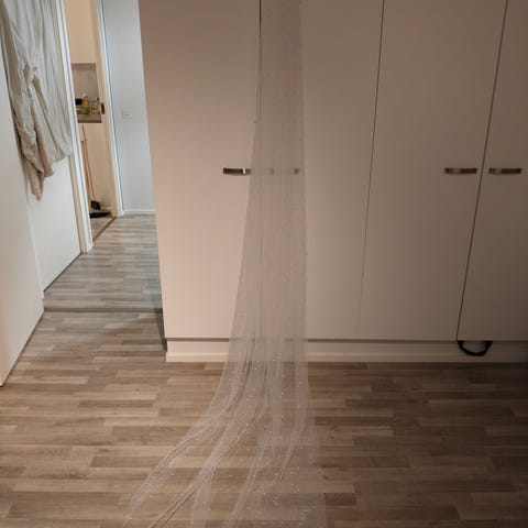 Myydään ihana kerran käytetty huntu. Pituus n.177-180cm. Ostettu glamourista. Hyvässä kunnossa ja täysin ehjä. Kammasta katkaistu piikkejä pois jotta meni omaan tukkaan.