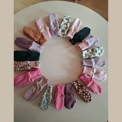 Jos ei löytynyt mieluisia lapasia sopivassa koossa katso viimeinen kuva jäljellä olevista kankaista, joista voin tehdä lapasia tilauksesta. Tilattujen lapasten toimitusaika noin viikon ♡