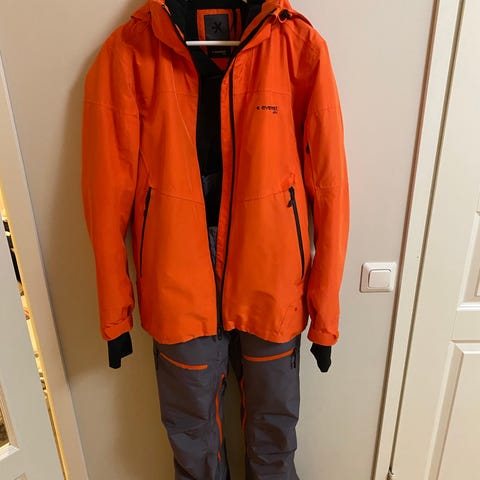 Everest lasketteluasu, johon kuuluu takki ja housut. Takki valittiin naisten osastolta mutta housut lasten mitootuksella. Sanoisin että sopisi oikein hyvin 155-160cm kokoa S olevalle nuorelle/naiselle. Takissa on musta ja vaalea kaksivärinen pinta, irrotettava tai säädettävä huppu sekä vetoketjukiinnitys. Housuissa vastaavasti säätövaraa vyötärön osalta.