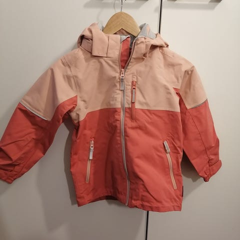 Lasten unisex-tyyppinen Polarn O. Pyret välikausi ulkoilutakki, koko 122 cm. Takki on muuten oikein siisti, mutta hihojen suissa on kuvan mukaiset pienet kulumajäljet. Takki on vedenpitävä ja siinä on hyvät heijastimet.