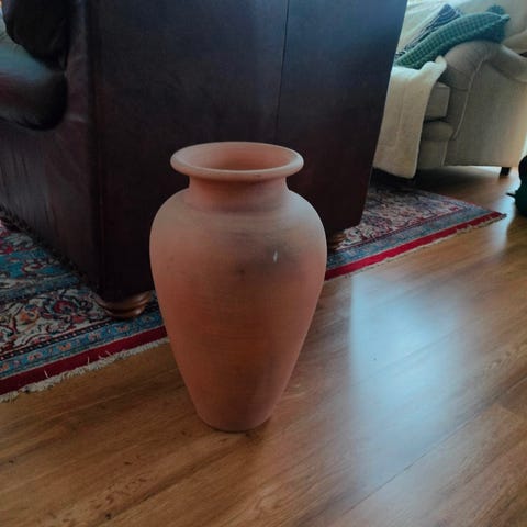 Musta,iso lasinen lattiamaljakko. Korkeus 43 cm. Pohjan halkaisia 15 cm.