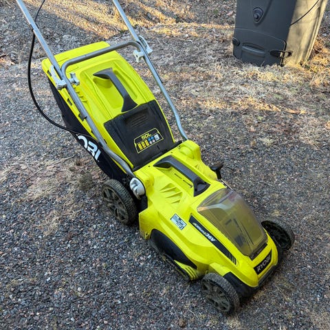Uusi Ryobi 36V Max Power RY36LM40A akkuruohonleikkuri, 5.0 Ah akku ja laturi.