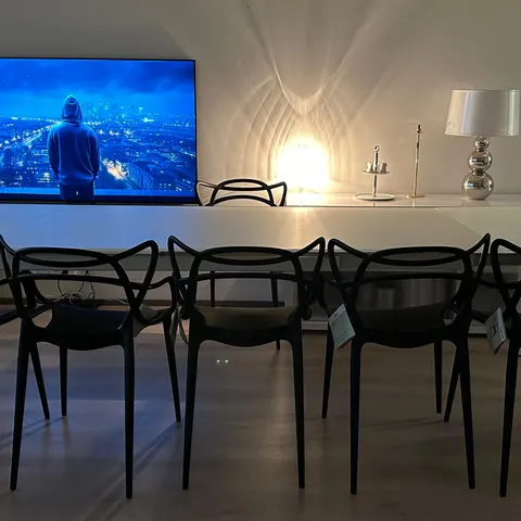 Pöytä ostettu Kruunukalusteesta ja on erittäin hyvässä kunnossa. Lasitaso on käytännössä virheetön, sillä sen päällä on pidetty koko ajan läpinäkyvää suojamuovia. Tämän ansiosta lasissa ei ole naarmuja. Pöytä on myös aika painava, joka kertoo sen hyvästä laadusta.