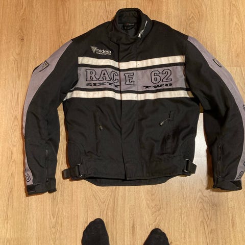 Wind Racewear ajotakki moottoripyörä- tai skootterikäyttöön. Takissa on musta-harmaa väritys, korkea kaulus ja etuvetoketju suojaläpällä. Edessä ja hihoissa on useita taskuja sekä säätöremmit vyötäröllä ja hihansuissa istuvuuden säätöön. Selkäpuolella on joustava kiristys vyötäröllä. Materiaali on kestävää kangasta, joka soveltuu ajokäyttöön. Sopii käytettäväksi ajotakkina eri vuodenaikoina aluskerroksista riippuen.