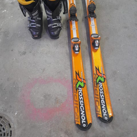 Monoski Rossignol vuodelta 1985! Toimivat ja kerran korjattu. Lookin siteet ovat säädettävät, mikä mahdollistaa erikokoisten monojen kiinnittämisen.
