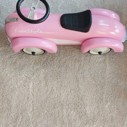 Fisher-Price retro potkuauto/kävelyvaunu. Sivussa on erilaisia nappuloita ja toimintoja, jotka on suunniteltu pienten lasten motoristen taitojen harjoitteluun. Potkuautoa voi käyttää sekä istuen että työntäen kävelyn tukena. Äänet ja toiminnot toimii! Paljon leikitty