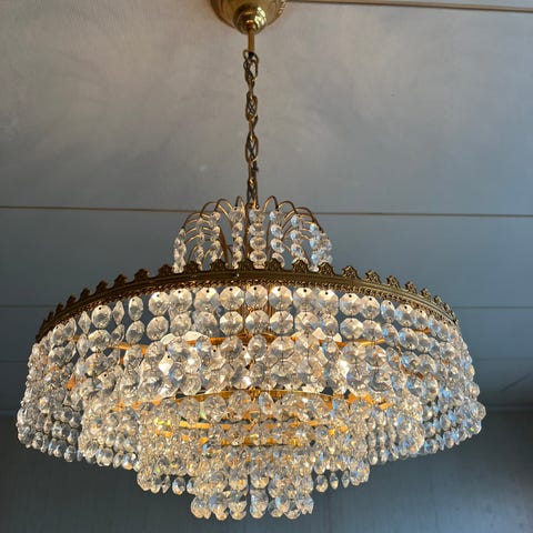 Kunto hyvä, pari kristallia puuttuu, mutta ei huomaa kun niitä niin paljon..