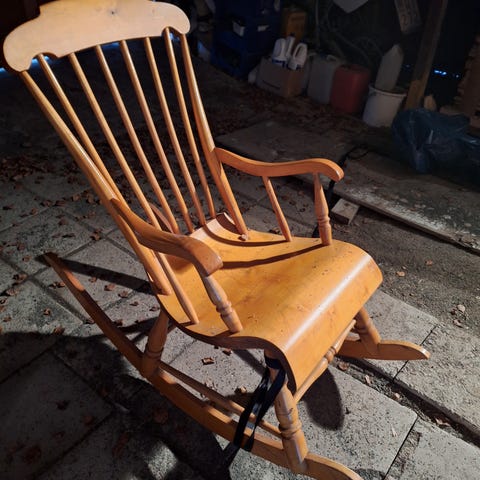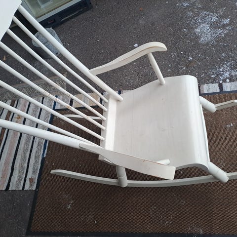 Keinutuolista on vähän maali kulunut pois, mutta muuten on hyväkuntoinen.