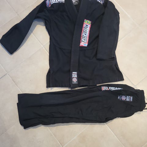 Grips jiu-jitsu puku musta. Pukuun kuuluu takki ja housut. Kuviollinen sisävuori takissa. Soveltuu brasilialaisen jiu-jitsun harjoitteluun ja kilpailukäyttöön. Puku on ostettu uutena ja käytetty vain muutamissa treeneissä. Kunto on kuin uusi. Koko A0