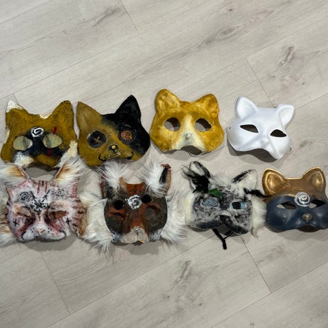 Lapsenlapsen tekemä Therian Saksanpaimenkoira maski.