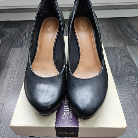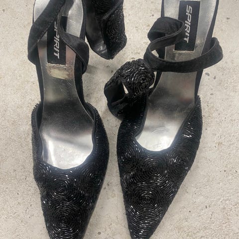Jälkimmäisten kengien materiaali on nahkaa ja korko on 9,5 cm