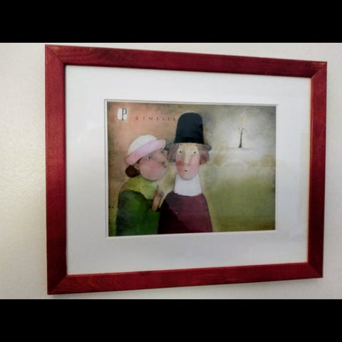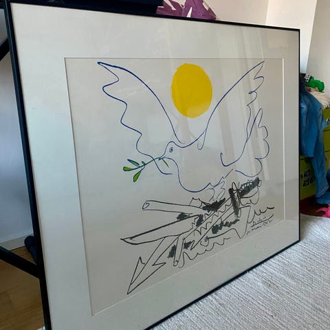 Picassojulisteessa ” sininen nainen” on kapeat kullanväriset kehykset. Julisteen korkeus 89 cm ja leveys 68 cm.