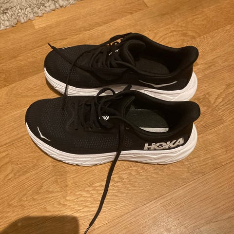 Hoka juoksukengät, koko 40. Päällinen musta/harmaa heijastava kangas ja pinta coretex.