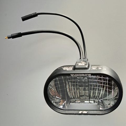 Kesäuudistuksen myötä vaihdettu uuteen, joten tämä lähtee. Lezyne Ebike Hecto Drive -etuvalo, kytkeytyy suoraan sähköpyörän akkuun — ei tarvitse ladata erikseen. Toimintakunnossa.