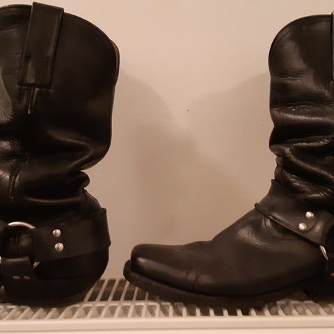 OSTAN! Boot factoryn. (Pekka Lahti) Biker tyyliset saappaat. Koko 46-47. Tarjoa! Kunnolla ei ole väliä!