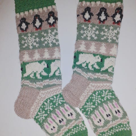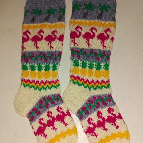Villasukat 7veljestä langasta. Varren mitta 41 cm ja jalkaterä 27 cm. Postikulut tarvittaessa 4e s-kokoisessa paketissa tai vaihtoehtoisesti Toridiilin kautta.