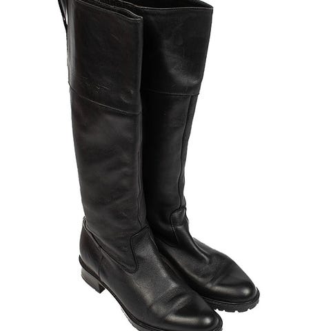 Nämä Pertti Palmrothin polvipituiset saappaat on valmistettu laadukkaasta tummanruskeasta mokkanahasta. Niissä on tyylikäs, pyöristetty kärki ja tukeva lohkokorko. Saappaissa on vetoketjukiinnitys sivulla.Kengän koko on 4 1/2.Valmistaja: PERTTI PALMROTHVäri: tummanruskeaKoron korkeus: 5 - 6 cmMateriaali: mokka/nahka