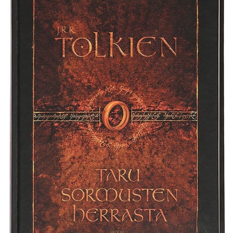 Taru sormusten herrasta kertoo Frodo-nimisestä hobitista, joka saa haltuunsa voimakkaan sormuksen. Frodo ja hänen ystävänsä matkustavat pitkän ja vaarallisen matkan, jotta paha ei saa sormusta. Kirja vie lukijan fantasian maailmaan, missä hyvä ja paha taistelevat.Tekijät/käsikirjoittajat: J. R. R. Tolkien ; suomentaneet Kersti Juva ; Eila Pennanen ; Panu PekkanenKustantaja: WSOYUlkoasu: 981 sivua ; 23 cmJulkaistu: 1985ISBN: 9789510132081Kovakantinen kansipaperillapainos, kansipaperissa kulumaa ja repeämiä. Keskimaan irtokartta puuttuu.