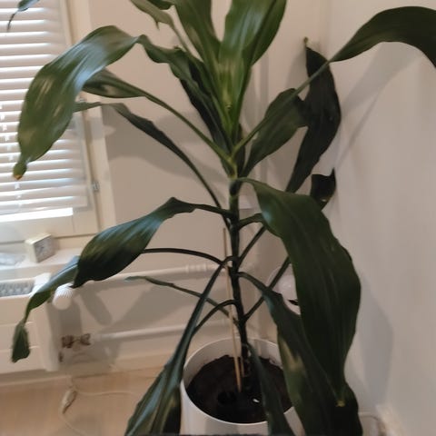 Noin 2 m pitkä Dracaena eli Ruokotraakkipuu. On todella helppohoitoinen. Etsimässä tilavampaa kotia, ei oikein enää mahdu pieneen kaksioon.