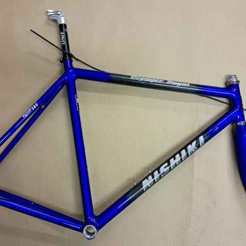 Rungossa on yksi vika, eli etuvaihtajan kiinnityskorvake on murtunut. Murtunut pala on mukana, osaava alumiinihitsaaja tuon korjannee helposti. Tai korvakkeen voi viilata kokonaan pois ja käyttää irtopantaa. Shimanon panta näyttää maksavan n 20e ja halvempiakin löytynee.