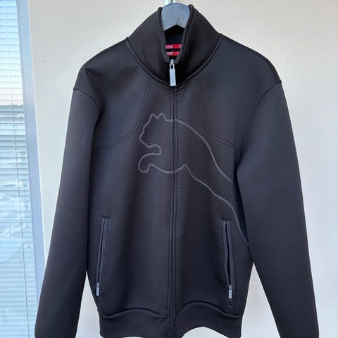 Puma miesten verkkariasu, koko M. Musta huppari ja housut, joissa edessä Puma-logo. Hupparissa kengurutasku ja kiristettävä huppu. Housuissa joustava vyötärö. Sopii arki- ja vapaa-ajan käyttöön. Ei kulumia yms vain paristi käytetty