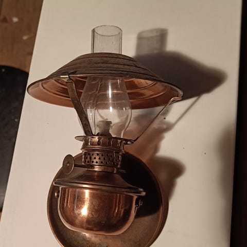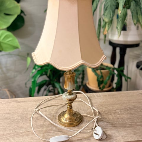 Messinkinen vanha pöytälamppu/ kynttilänjalka.