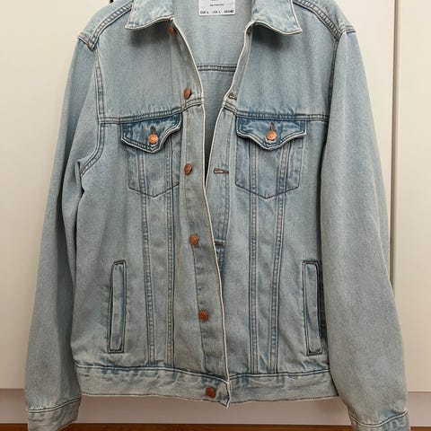 Jack & Jones farkkutakki, revitty malli, koko L. Edessä kaksi rintataskua, ei sivutaskuja. Hinta 12 e.