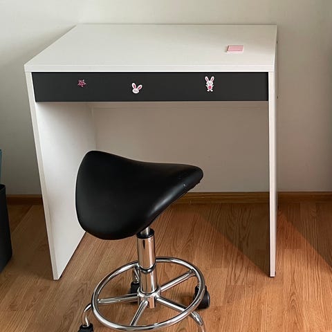 Myydään itse rakennettu lastenhuoneen pöytä (80x50x43cm, P x L x K). Pöytälevy on valkokuulto petsillä käsitelty mäntylevy. Mustat, metalliset jalat. Pöytälevy siistissä kunnossa; muutamassa kohtaa värikynästä viivoja (puuväri tai vahakynä).
