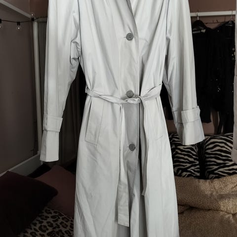 Erich Fend, Itävalta, lyhyt trenssi takki, koko 38 - 40, väri keltavihreä, lähempänä keltaista, kauluksessa on huppu, joka piiloutuu kauluksen sisään. Mitat , pituus 69 cm, kai kai 51 cm, hiha 63 cm. Takki kiinnitetaan vetoketjulla ja napella, trenssi on erittäin hyvässä kunnossa.